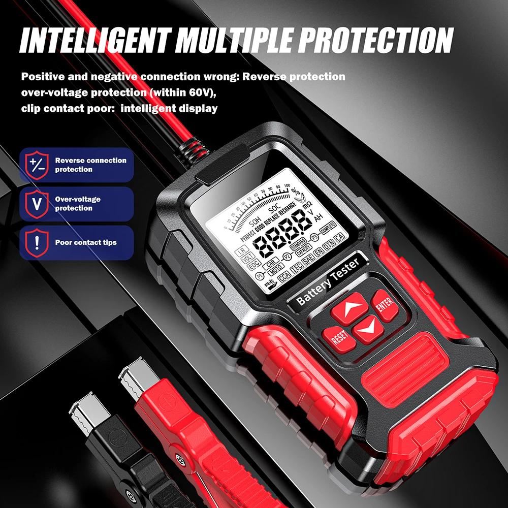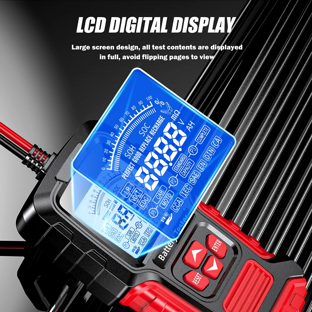 Designed with convenience in mind, this digital test tool offers real-time diagnostics you can trust. It measures key indicators like State of Health (SOH), State of Charge (SOC), Cold Cranking Amperes (CCA), and Internal Resistance (IR) with unmatched accuracy. Equipped with an easy-to-read LCD screen, it gives clear, actionable results in seconds. Forget about overly complicated interfaces or guesswork—this tester makes your battery’s condition visible and understood with just one glance.